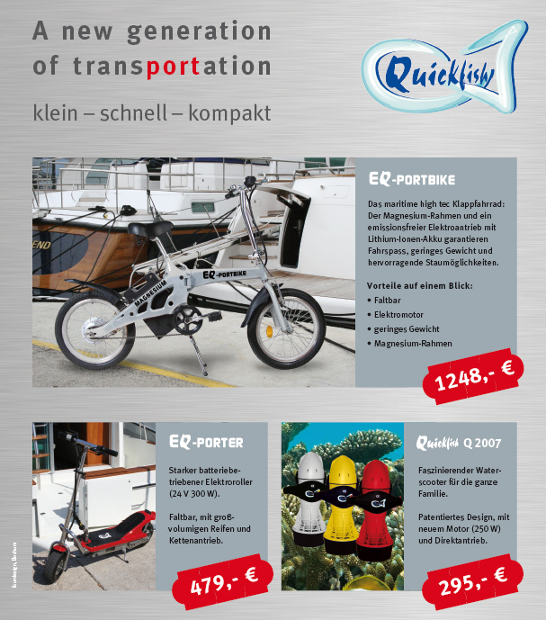 [Home] [Kontakt] [Lieferung] [Quickfish] [EQ-Porter] [EQ-Portbike] [Foto-Gallerie] [Impressum-AGB]
