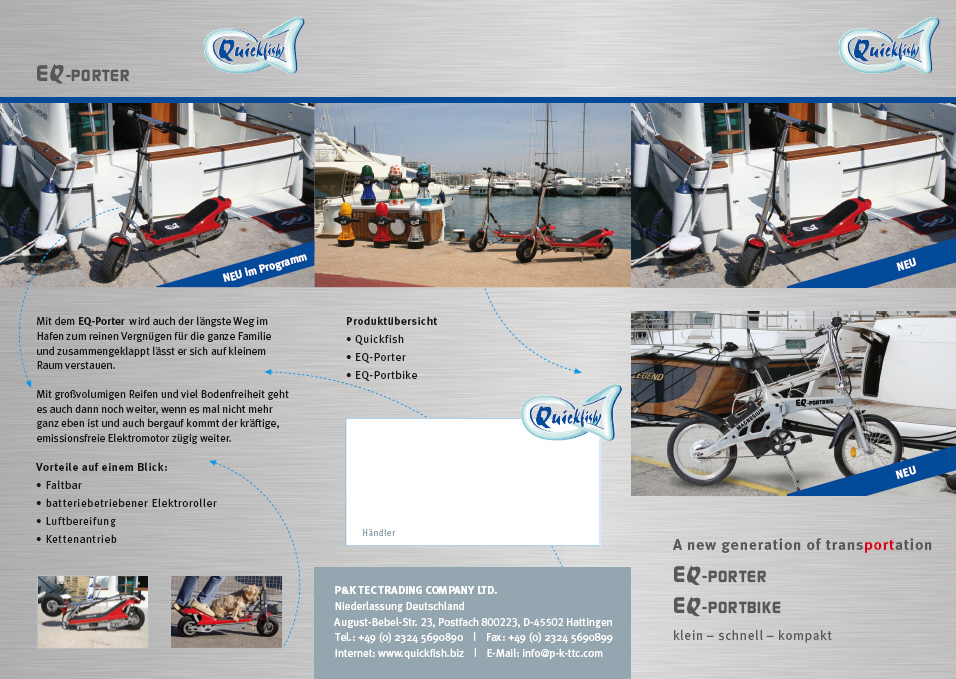 [Home] [Kontakt] [Lieferung] [Quickfish] [EQ-Porter] [English] [EQ-Portbike] [Foto-Gallerie] [Impressum-AGB]